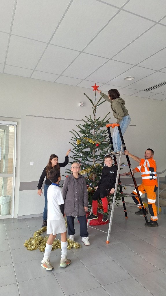Ce mercredi 10 décembre, les jeunes élus du Conseil Municipal des Enfants ont participé à la décoration du sapin de Noël de la grande salle des fêtes afin d'aider les agents communaux en cette période intense de travail.