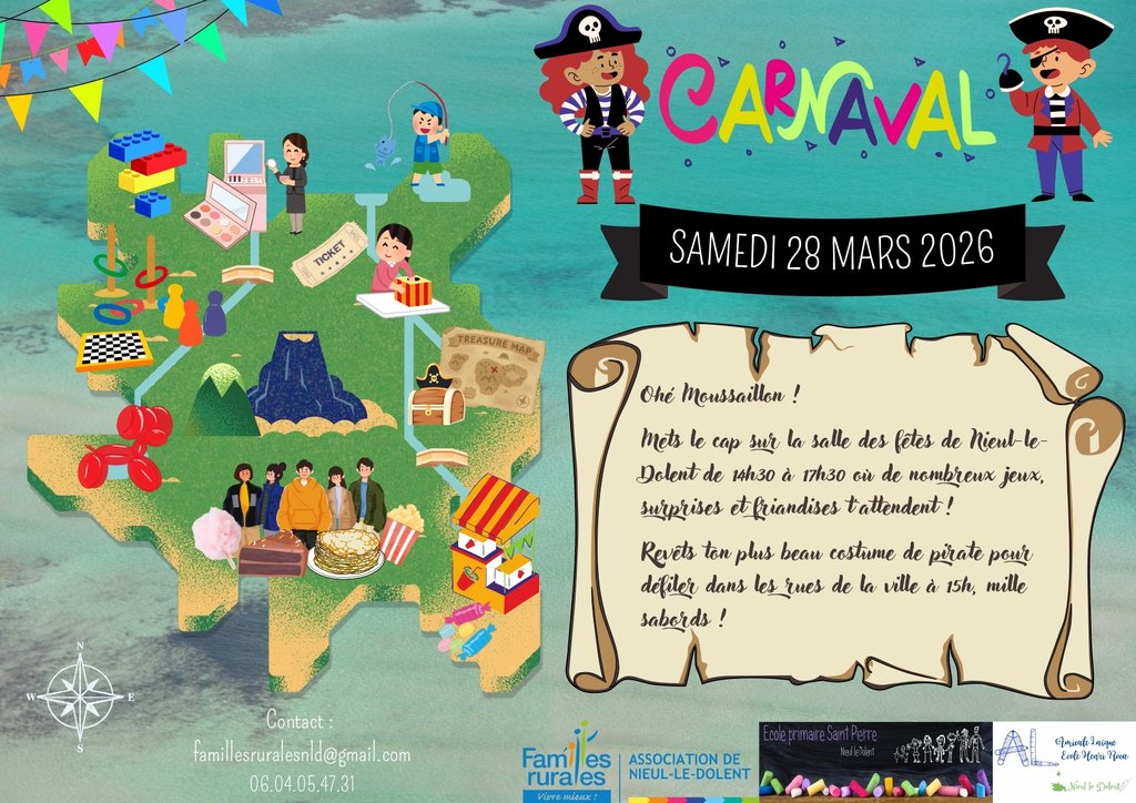 🎉 Les trois associations – École Saint Pierre, Amicale Laïque de l'école Henri Roca et Familles Rurales – vous donnent rendez-vous pour le carnaval !