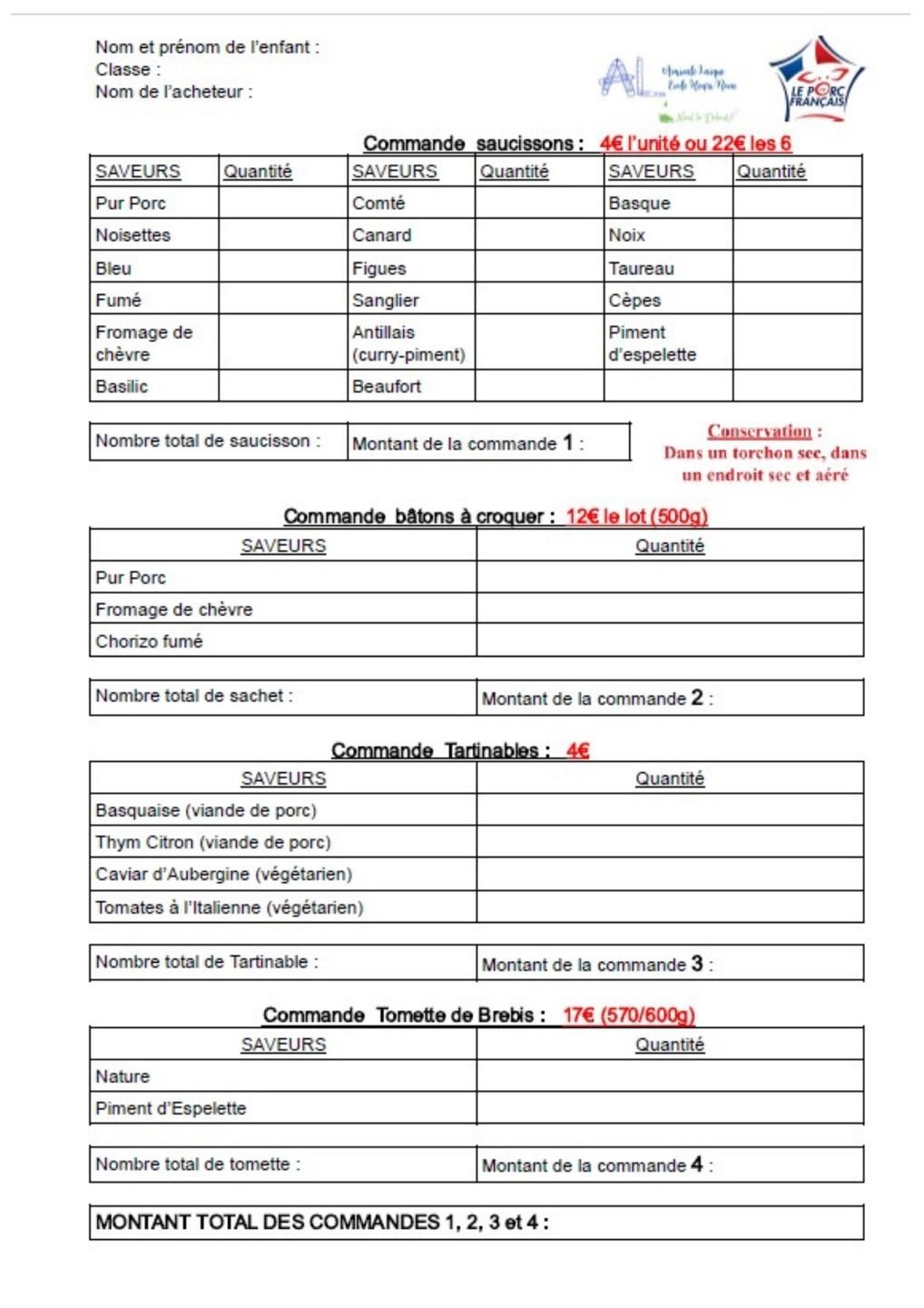 ▶ Commande via le lien Helloasso : https://www.helloasso.com/associations/amicale-laique-de-l-ecole-publique/evenements/operation-saucisson-2025 ou à déposer dans la boîte aux lettres de l'Amicale : 8 bis rue Pierre Gautron - Prolongation des commandes jusqu'au lundi 12 mai ⚠